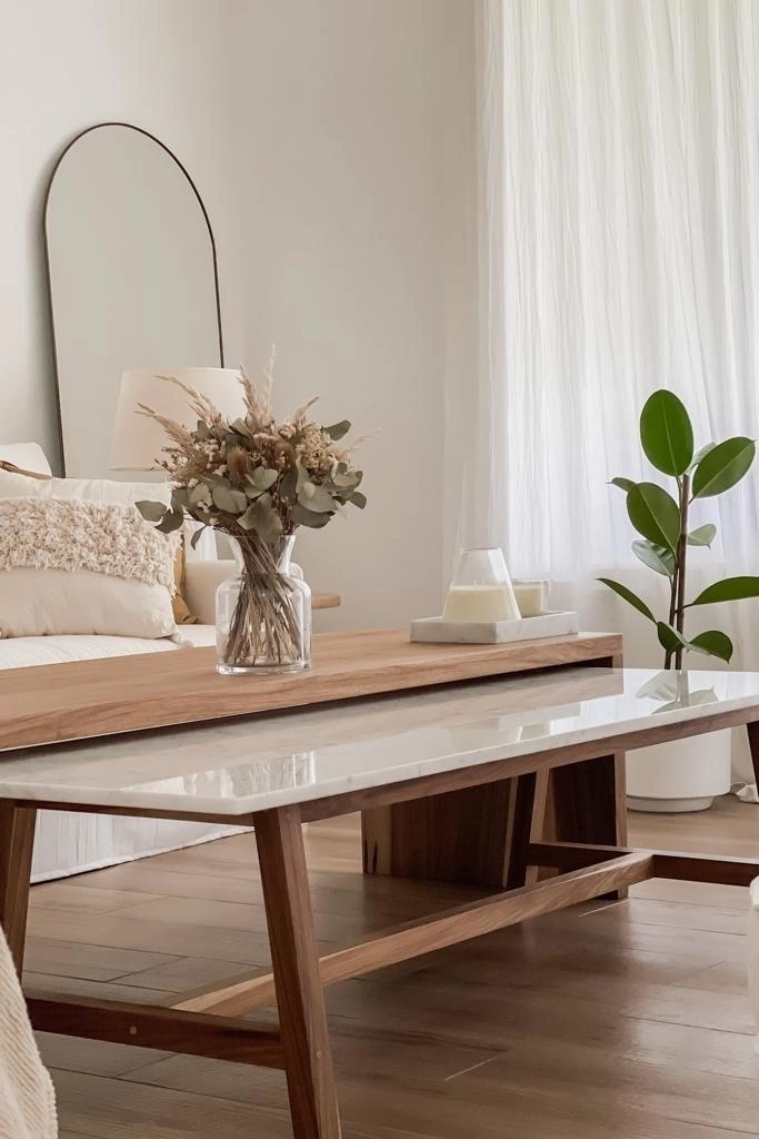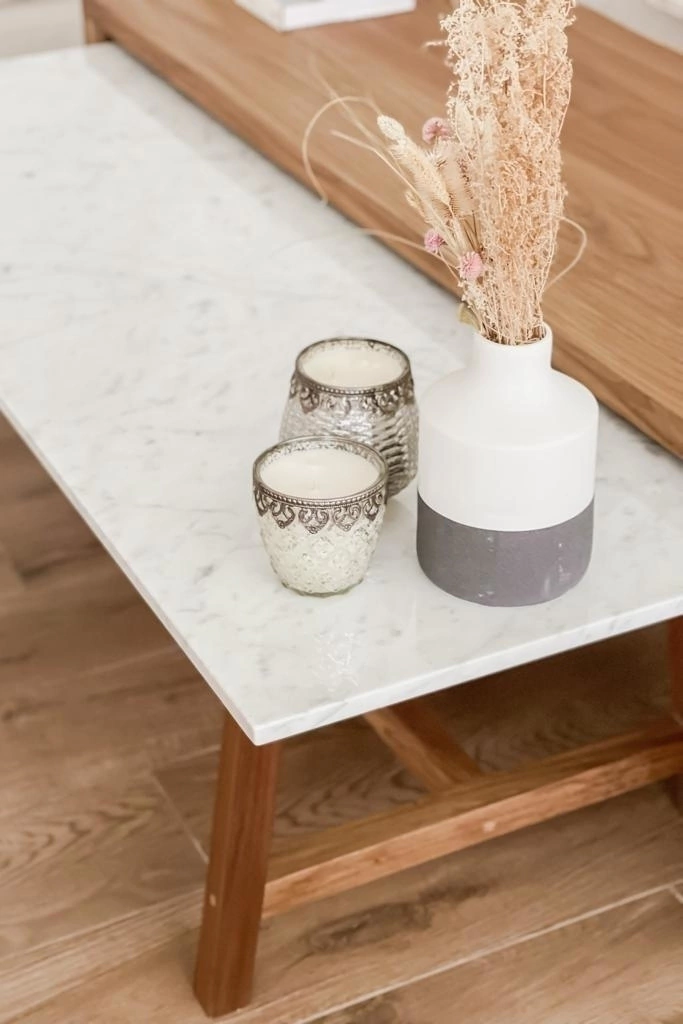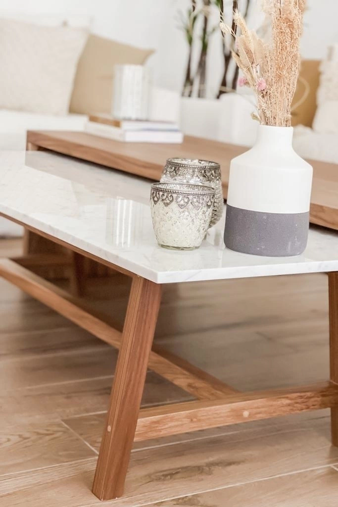 Mesa ratona con estructura en petiribi macizo y tapa en marmol de carrara. (consultar por otras medidas).