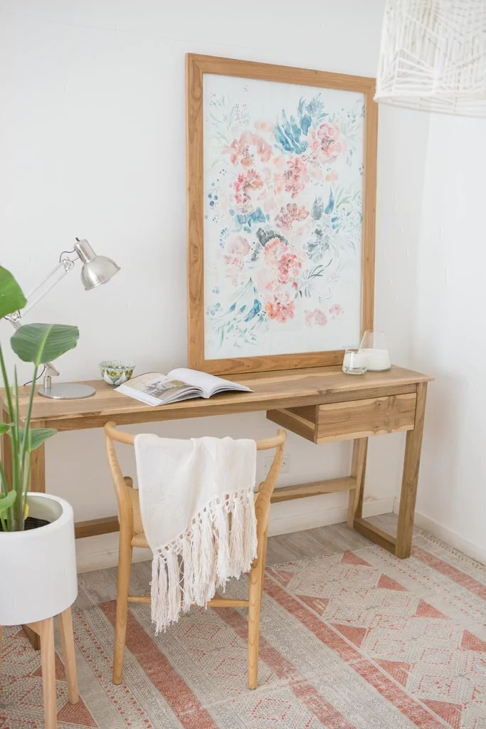 Escritorio con cajón con correderas telescopicas y estructura en petiribi macizo y tapa enchapada.