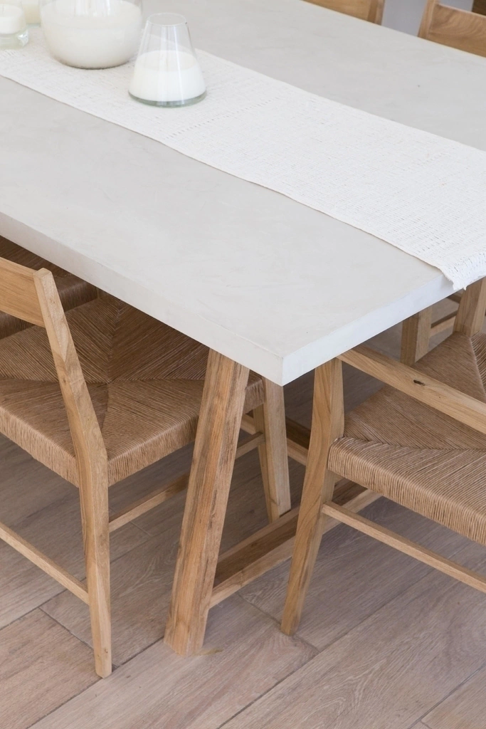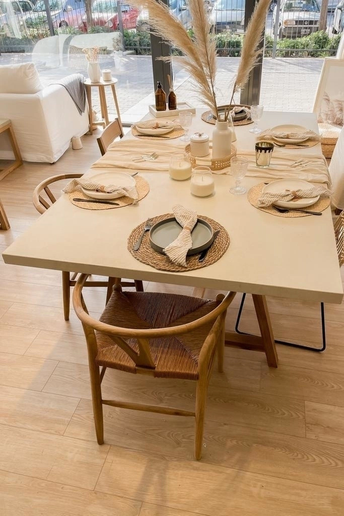 Mesa con estructura en madera petiribi y una tapa con terminación en cemento alisado y laca. El cemento alisado se aplica a mano, es artesanal, con lo cual este puede tener vetas, marcas e imperfecciones propias del cemento. En showroom pueden encontrar muestras y ejemplos. La foto es a modo ejemplo. Por otras medidas consultar. A los efectos de preservar este producto le sugerimos tener en cuenta lo siguiente: - utilizar un trapo húmedo para mantener la superficie limpia, se pueden utilizar detergentes neutros. NO utilizar cremas limpiadoras o productos abrasivos, en caso de derrame de líquidos, se recomienda secar inmediatamente con un paño suave y limpio, no apoyar directamente sobre la superficie objetos calientes, no cortar ni picar directamente sobre la superficie, no exponer el producto a lavandinas, acetona, vinagre, aceto, perfumes, jabones de todo tipo en forma permanente, ni utilizar esponjas ni lijas, para mantener el brillo y la impermeabilización de la superficie utilizar cera acrílica incolora o productos lustra muebles a base de silicona.