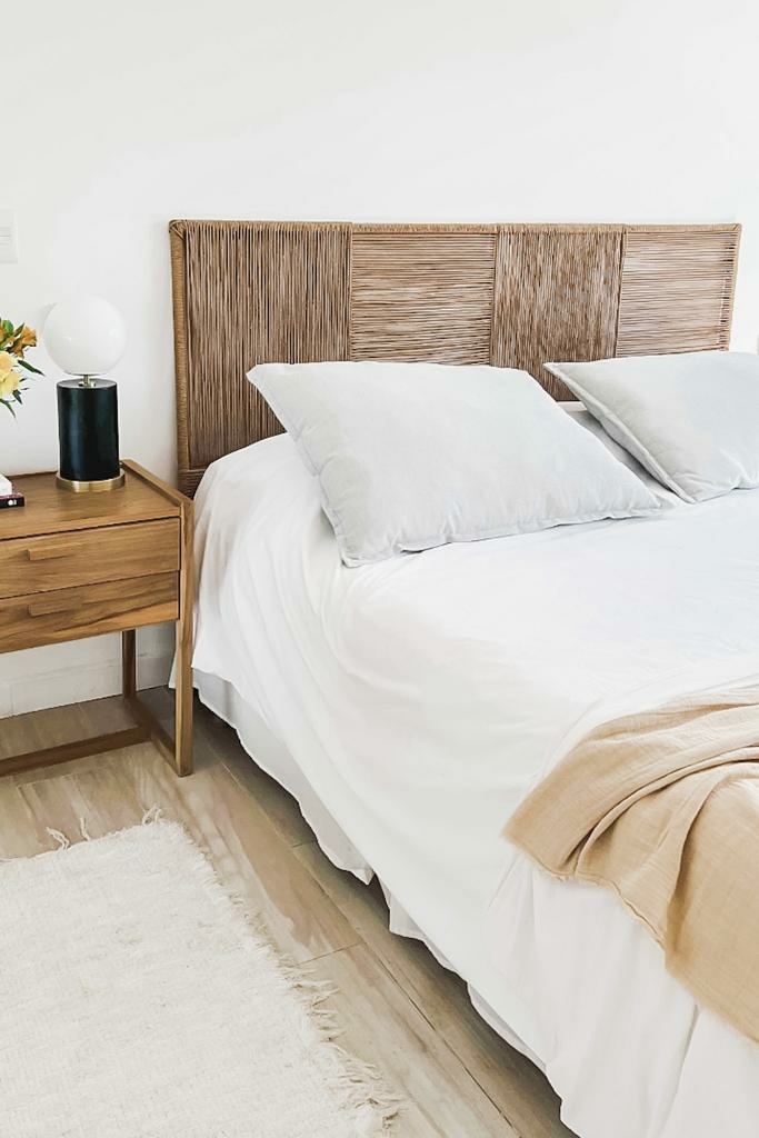Respaldo de cama con estrutura de hierro tejido con hilo kraft.